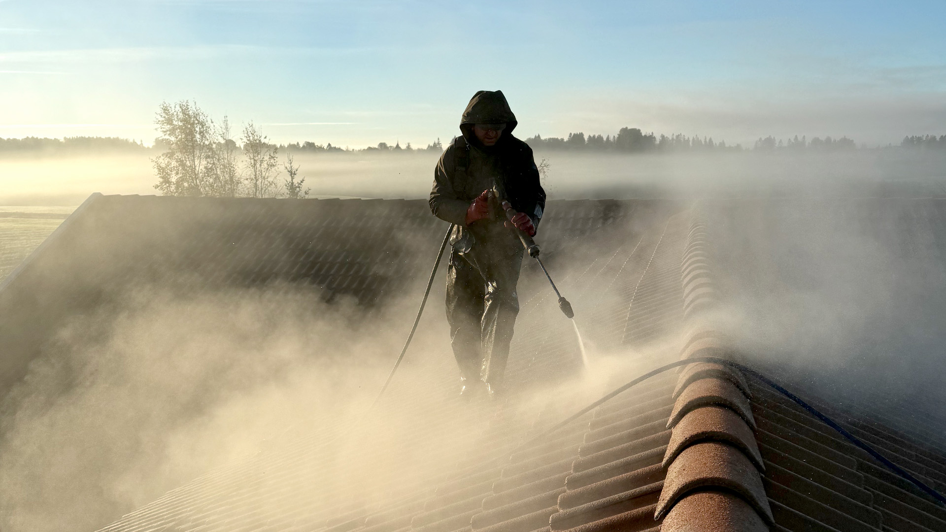 Et tak utsettes for store påkjenninger gjennom året. Nedbør, blader, pollen og fugleavfall skaper grobunn for mose og lav som tærer på belegget og ødelegger steinen over tid. For å beholde kvaliteten og det flotte utseendet på husets femte fasade, bør taket vaskes før skadene utvikler seg.